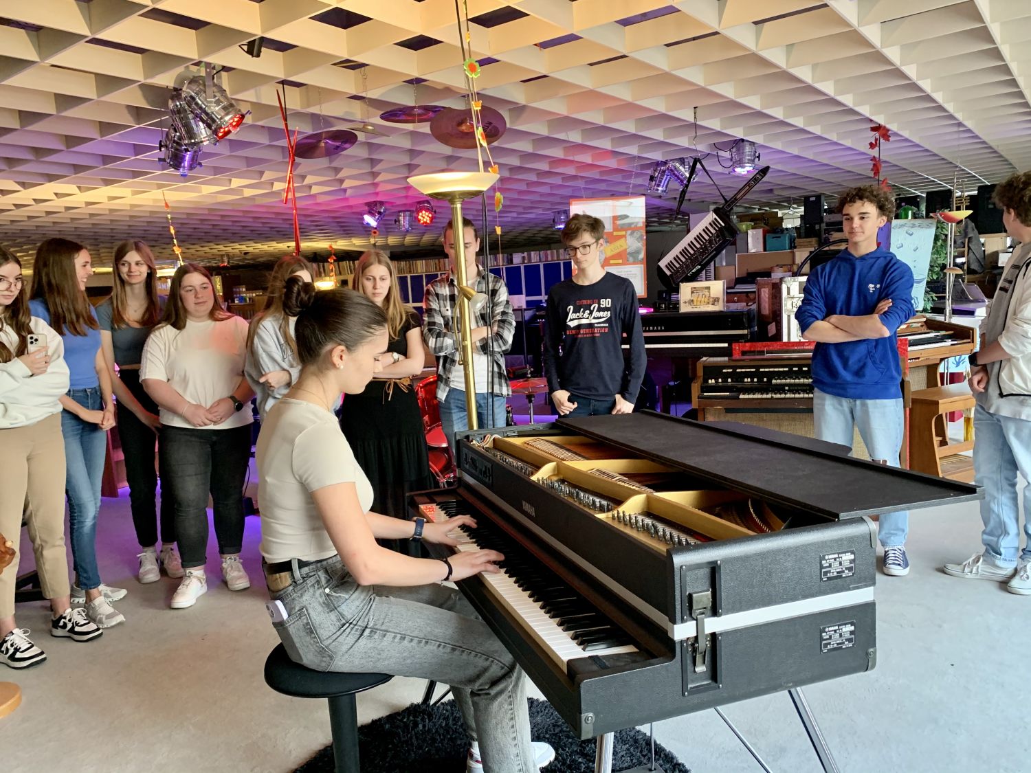 Begleitet von Prof. Chiara Wegscheider besuchte nun eine Abordnung aus 3AHW, 3BHW und 3CHW die Räumlichkeiten am Rande des Messegeländes und begutachtete die weltweit größte Sammlung an Vintage-Keyboards. „Gert Prix persönlich gab uns eine tolle Führung durch die Räumlichkeiten und präsentierte uns Songs auf den verschiedenen Instrumenten. Zudem durften sich die Schüler*innen selbst musikalisch versuchen“, zeigt sich Wegscheider begeistert.