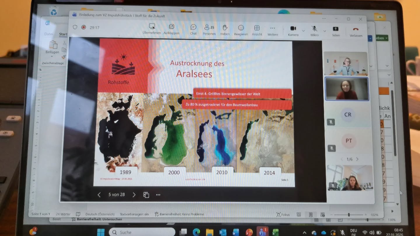 Im Fokus standen die globalen und ökologischen Auswirkungen verschiedener Textilfasern. Ein Kleidungsstück hinterlässt bereits lange vor dem ersten Tragen seinen ökologischen Fußabdruck und begleitet die Umweltbelastung über seinen gesamten Lebenszyklus hinweg – von der Fasergewinnung über Produktion und Nutzung bis hin zur Entsorgung.