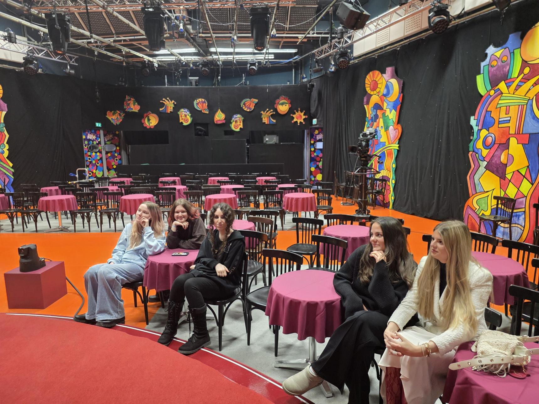 Im Anschluss führte der Rundgang weiter in das Studio der Sendung „Kärnten heute“, wo die Klasse Einblicke in Produktion, Technik und Ablauf einer Fernsehsendung erhielt. Ein weiteres Highlight war der Besuch des ORF-Theaters, in dem an diesem Tag gerade Aufzeichnungen für die Sendung „Narrisch guat“ vorbereitet wurden.